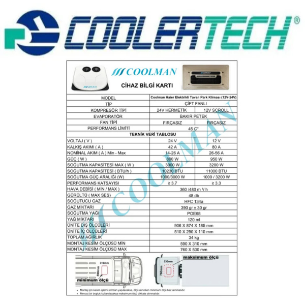 Coolman Haier Elektrikli Tavan Park Kliması (12V-24V)
